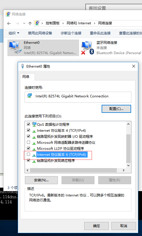 根据用户反馈和我们的测试,部分windows10用户使用我们的客户端或者使用手工配置的vpn后,能拨通VPN,但DNS污染还是存在,经过确认这是win10和ipv6功能有关,建议一般用户按下图,把本地链接的IPV6的选项去掉.