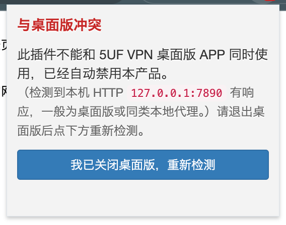 Using alongside our official desktop VPN client: added warnings when the browser extension may conflict with the 5UF VPN desktop app, to avoid unstable behavior when both may interfere with or compete for network/proxy settings.