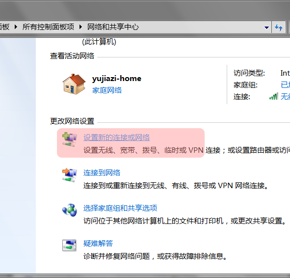 第二步:点击”设置新的连接或网络“