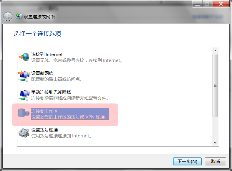 第三步:选择”连接到工作区“,点击”下一步”