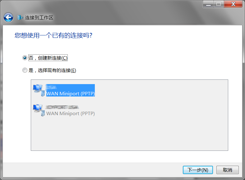 第四步:如果已经存在其他连接,则在这一步选择”否,创建新连接“;如果没有,则这一步将被跳过