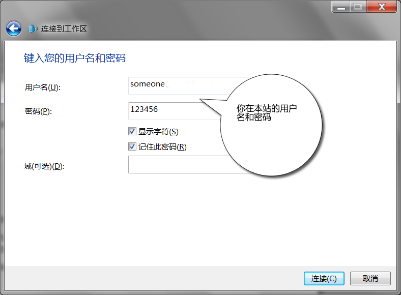 第七步:填写你在无忧府VPN上注册的用户名和密码,点击”连接“